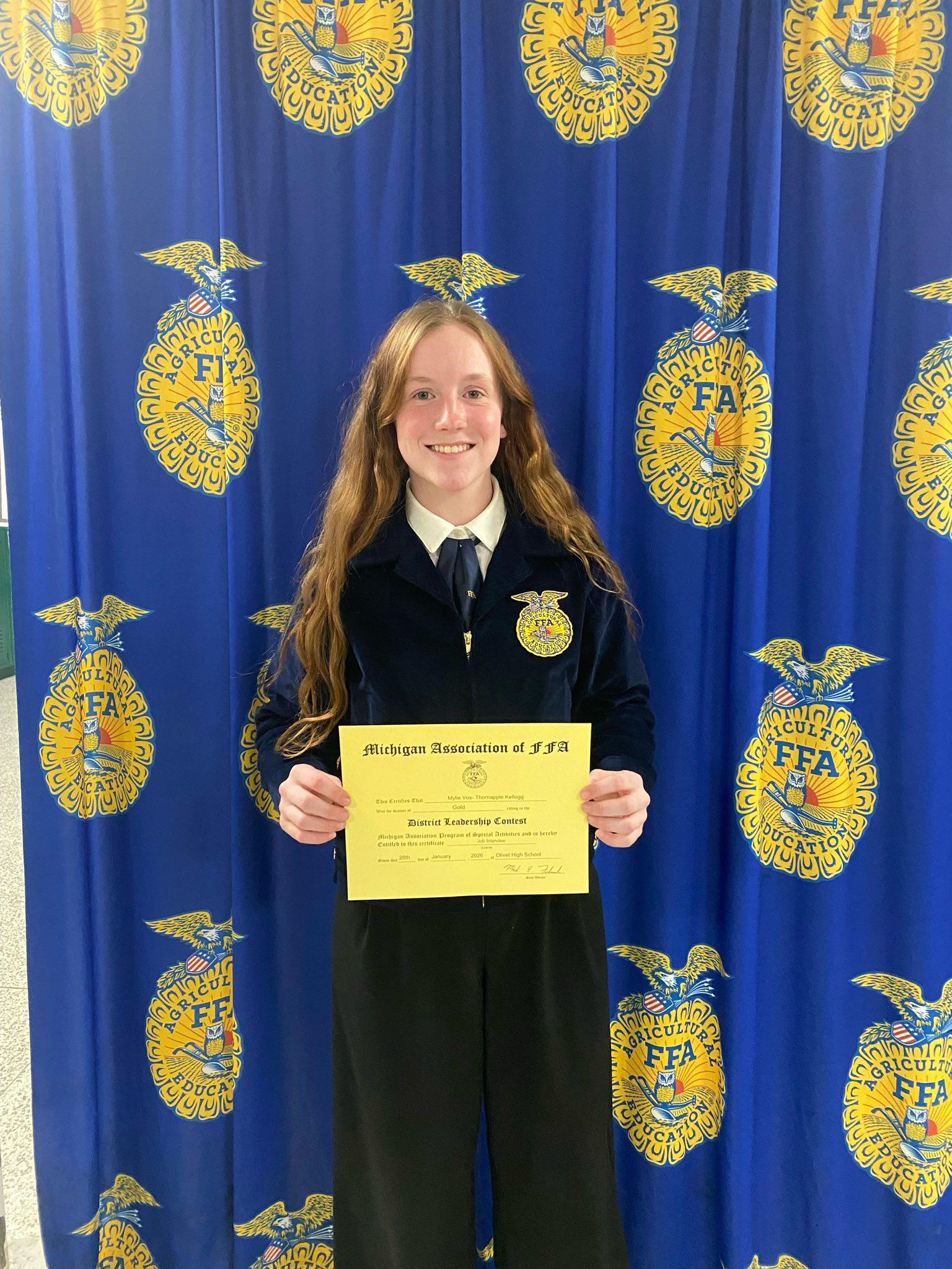 The high school sent 35 members to the district leadership contest at Olivet High School Wednesday. TK will send members in contest categories of creed speaking, agricultural issues, prepared public speaking and greenhand conduct of meetings, to the regional contest Feb. 11 at Marshall High School.